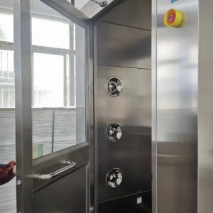 น้ำหนัก ประมาณ 220 – 350 กก. ขนาดภายนอก (มม.): 1240 x 980 x 2100 Filter ออกทางไหน (Air Flow Direction) Air Shower ทุกระบบจะทำงานแบบนี้: www.youtube.com/watch?v=kI6YvI8Bb50 ลำดับการไหลของลม - พัดลมดูดอากาศกลับด้านล่างหรือด้านข้าง - ผ่าน Pre-filter (กรองฝุ่นหยาบ) - ผ่าน HEPA Filter (99.99%) - เป่าออกทาง Nozzle รอบตัวผู้ใช้งาน HEPA Filter : อยู่ด้านบนเครื่อง ลมเป่า : ออกจากหัวฉีดด้านข้าง + ด้านบน ลมกลับ : ช่องดูดด้านล่าง การตั้งค่าเวลาลม (Air Shower Time Setting) สเปคของรุ่นนี้: ตั้งเวลาได้ 0–99 วินาที ค่าโรงงานตั้งประมาณ 10 วินาที วิธีตั้งค่า (มาตรฐาน) ที่ Control Panel: เปิดเครื่อง กด SET / TIME ตั้งเวลา (เช่น 10–15 sec สำหรับบุคคล) ประตูปิด → ระบบเริ่มเป่าอัตโนมัติ ครบเวลา → ประตูอีกด้านเปิด